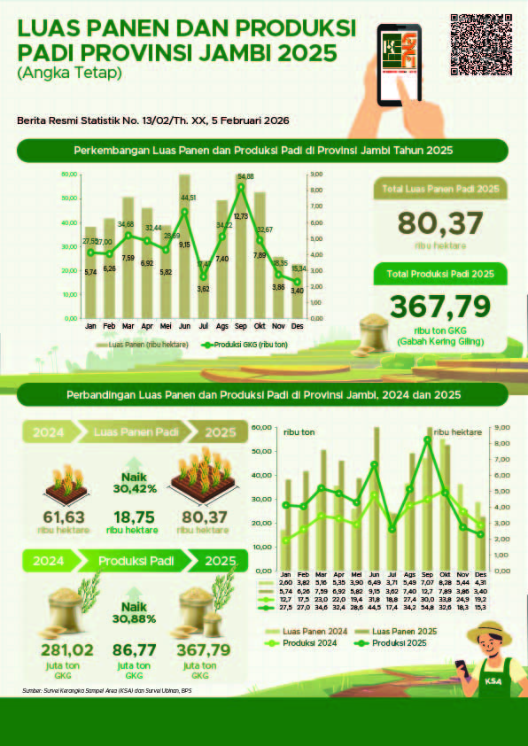 Luas Panen dan Produksi Padi di Provinsi Jambi 2025