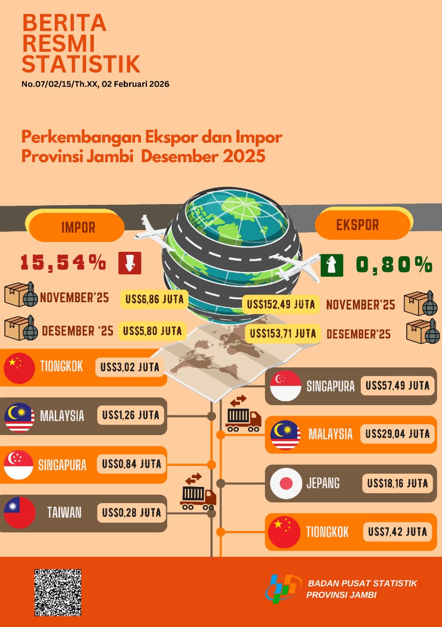 Perkembangan Ekspor dan Impor Bulan Desember 2025 Provinsi Jambi