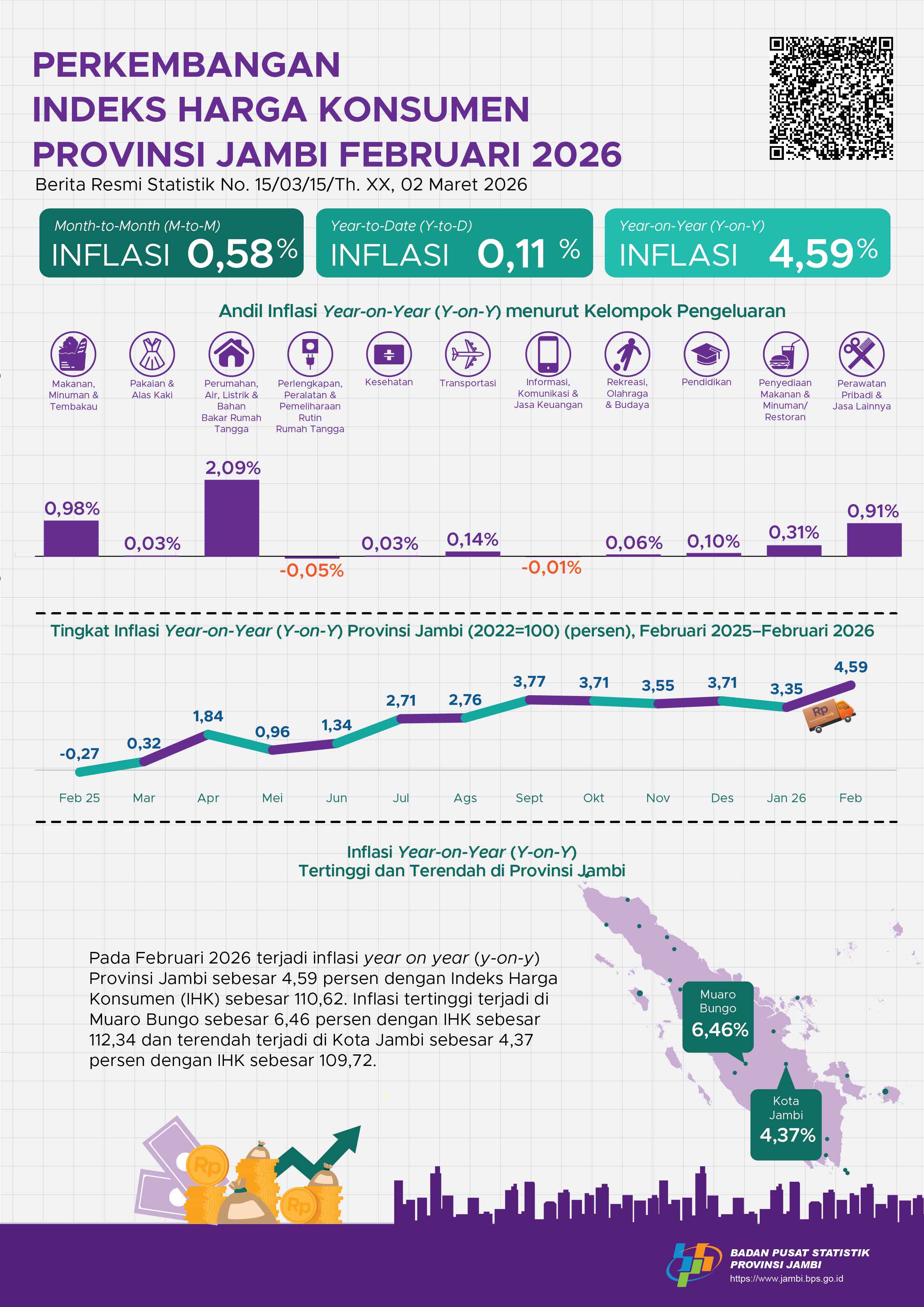 Inflasi year-on-year (y-on-y) Provinsi Jambi pada Februari 2026