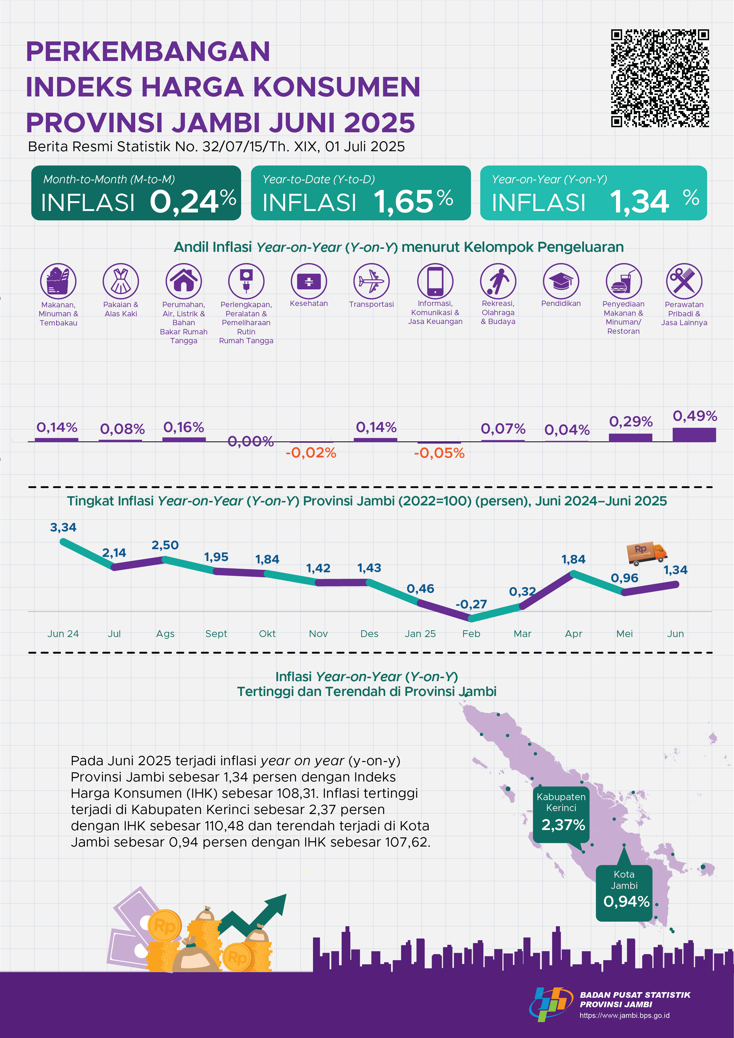 Perkembangan Indeks Harga Konsumen Bulan Juni 2025 Provinsi Jambi