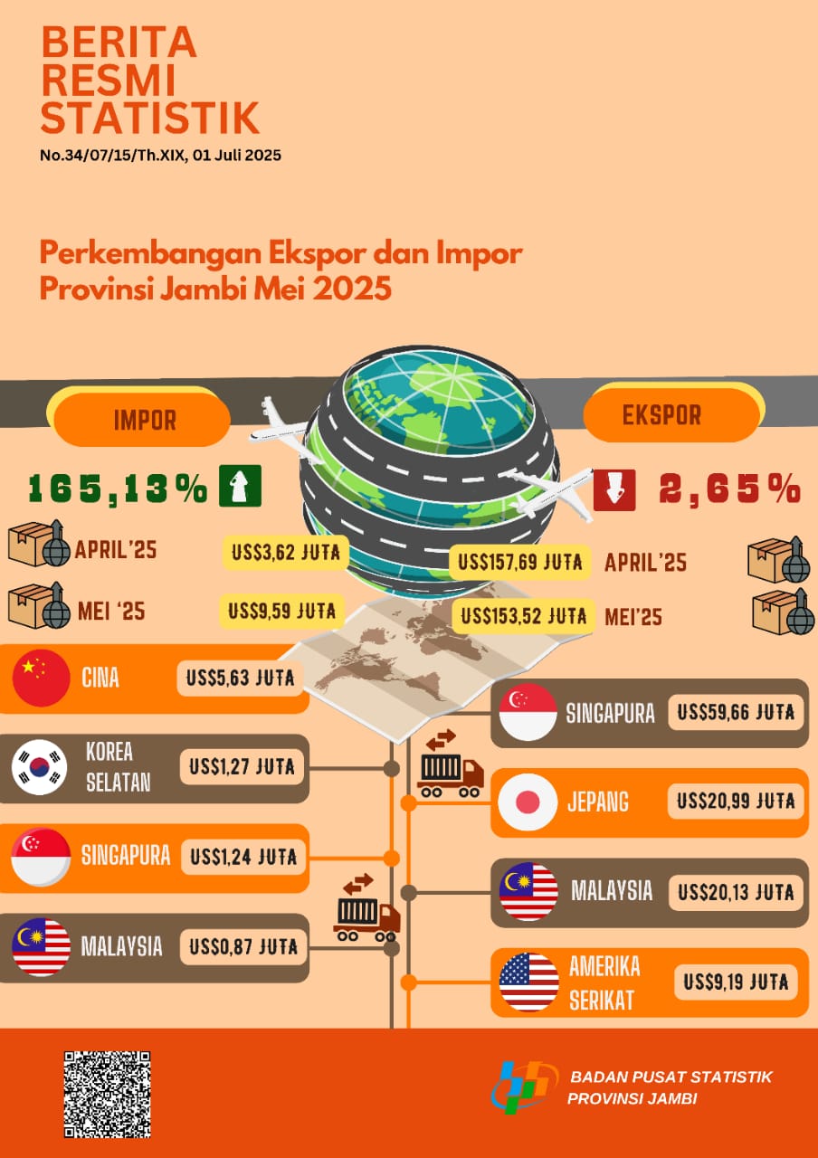 Perkembangan Ekspor dan Impor Bulan Mei 2025 Provinsi Jambi