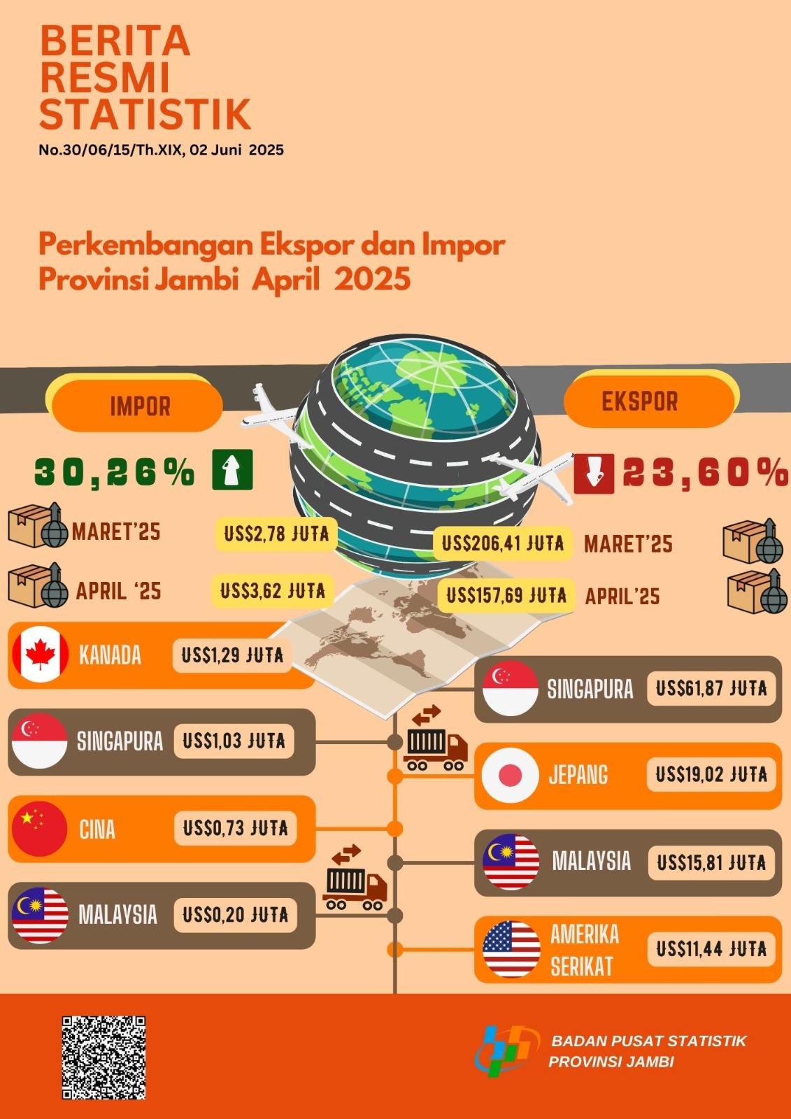 Perkembangan Ekspor dan Impor Bulan April 2025 Provinsi Jambi